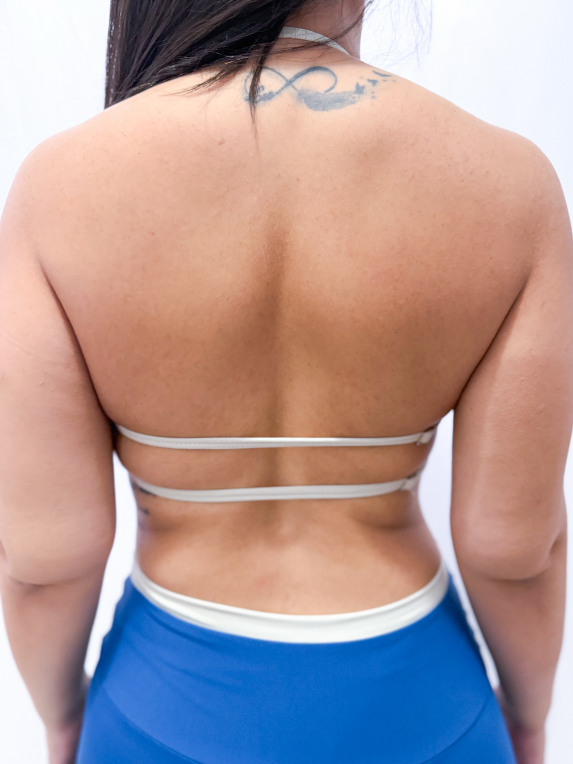 O conjunto Carol é composto por top de frente única que prendem ao pescoço, valorizando os ombros e o colo. Possui detalhes em Off White que destacam o seu design. Nas costas o modelo conta com 2 alças finas horizontes ajustáveis, que é o seu grande diferencial deixando-o moderno e lindo.