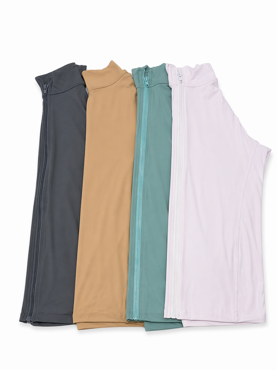 Casaco de desporto em Poliamida com zíper até a gola e com mangas longas e justas , possui abertura para os polegares  .