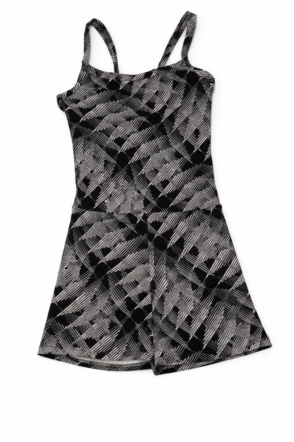 O macaquinho DLK tem estampa geométrica em preto e branco, trazendo um visual versátil e marcante, as alças medias garantem a sustentação enquanto as costas aberta adicionam um toque de sensualidade.